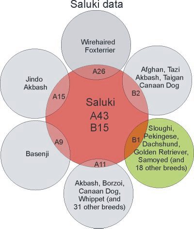 and Canaan dog share more maternal lines with Salukis than Salukis share